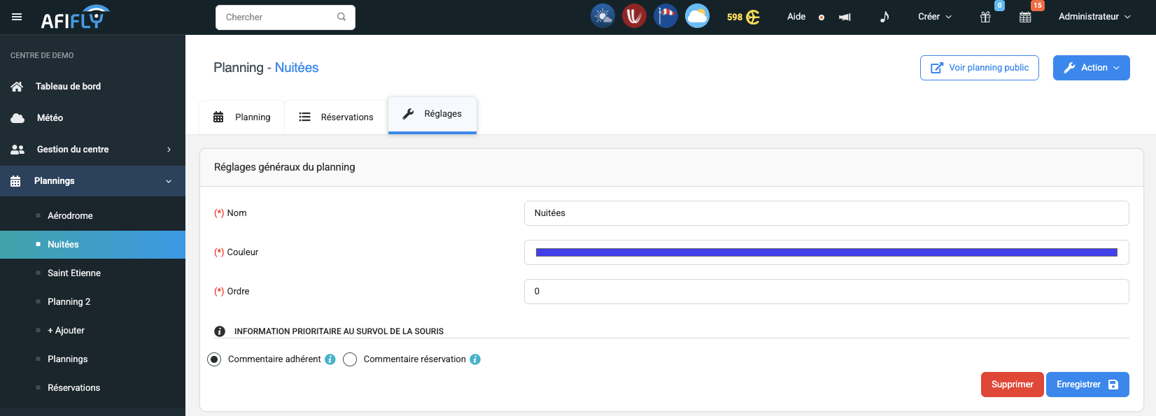 Vous pouvez également choisir si vous préférez afficher en priorité, au survol de la souris, le commentaire privé de la fiche adhérent ou le commentaire sur la réservation.
